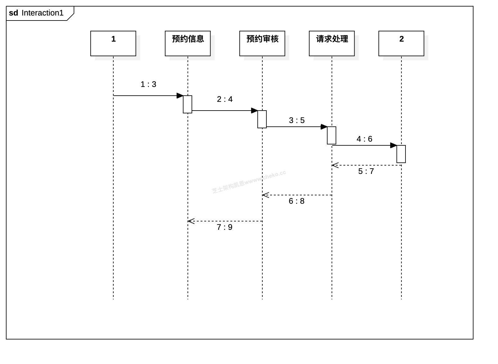 该业务流程以UML序列图的形式表现如下图所示,请结合图示与业务场景,回答下列问题: