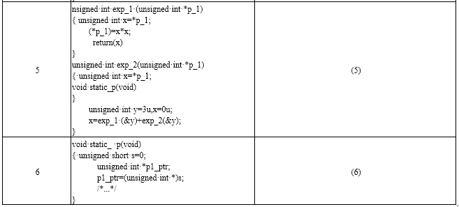 5) 不允许。违背(建议)规则6.3和强制规则12.2. x=exp_1(&y)+exp_2(&)应修改为:x=exp_1(&y);x+=exp_2(&y)。