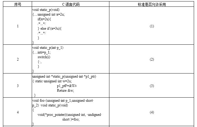 王总汇报时指出,在设计安全攸关系统软件时,往往不重视安全攸关软件设计方法, 不遵守C语言安全编码规范,导致程序质量较差,代码中存在支全隐患。请简要说明表 3-1给出的C语言代码是C语言安全编码标准中(如:MISARC标准)不允许采用的代码 结构的原因。