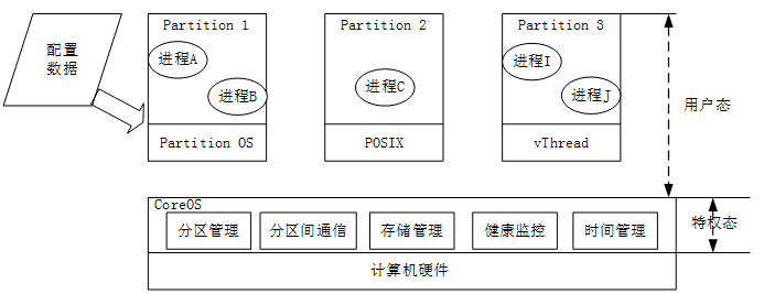 分区是一个相对独立实体,对于每个分区来讲,它们在空间和时间上完全隔离;分区由一个以上的进程组成,在时间上,每个分区按预先设定的时间片运行,分区没有优先级,系统中的所有分区按线性方式顺序工作;在空间上,每个分区有自己独立的存储空间,其空间大小是预先分配好的,任何分区内的进程发生故障不会影响其他分区的进程运行。分区技术使应用之间既能够相互独立的工作而不相互影响,又能共享系统资源;各个应用之间故障隔离,防止错误蔓延,可靠性和安全性高。开发人员能够快速地将新的软件模块插入系统,从而实现了高级别的系统集成和更新。
