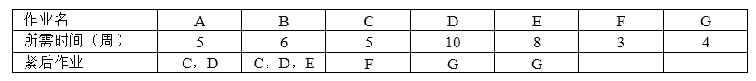 某工程有七个作业A~G,按计划,完成各作业所需的时间以及作业之间的衔接关系见下表: