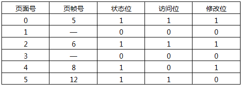 某系统采用请求页式存储管理方案,假设某进程有6个页面,系统给该进程分配了4个存储块,其页面变换表如下表所示,表中的状态位等于1和0分别表示页面在内存或不在内存。当该进程访问的第3号页面不在内存时,应该淘汰表中页面号为(__)的页面。