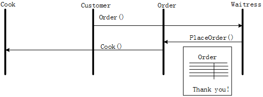 餐厅的点菜过程如下面的UML顺序图所示,现采用命令(Command)模式来实现该场景。那么下面顺序图中,与命令模式中的类"Command"对应的类是(【Order】);与类Receiver对应的类是(【Cook】)。